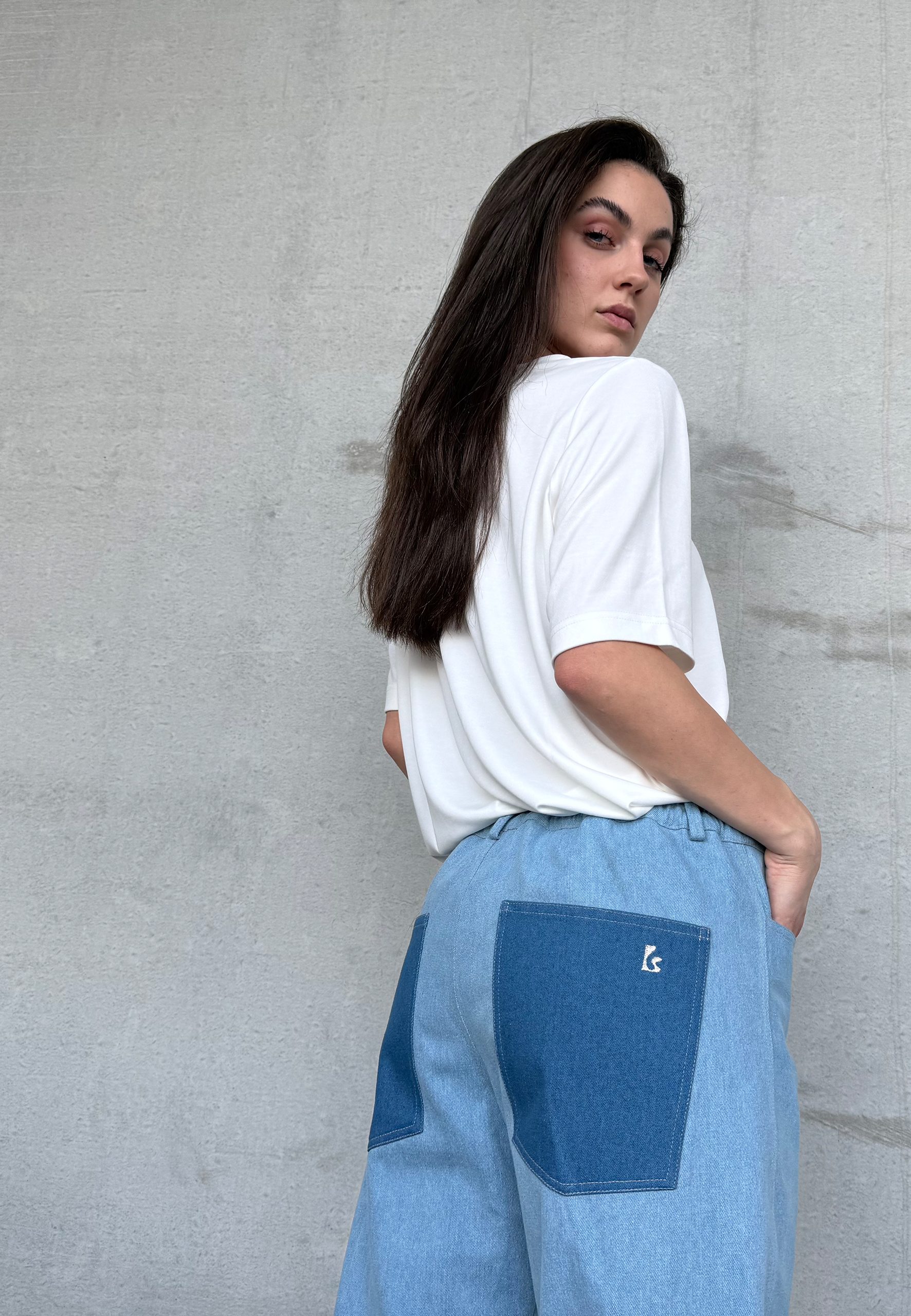 large back pockets with LYVEM logo embroidery